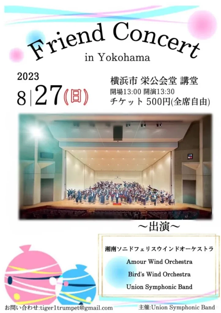 【イベント参加】Friend Concert in Yokohama 公演日:2023/08/27 開場:13:00 開演:13:30 会場:横浜市栄公会堂 Googleカレンダーに追加 Timetreeに追加 曲目夜の街へ、君の手を引いて カーペンターズ・フォーエバー フィンガー5コレクション 宝島 シロクマ 花は咲く